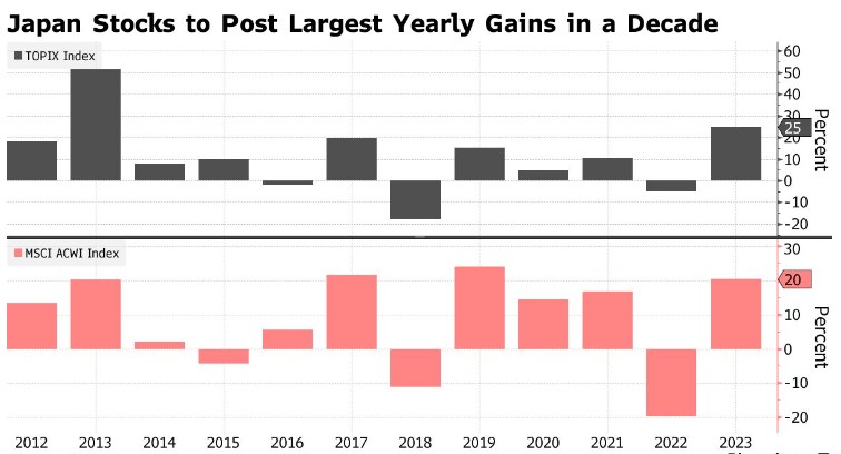 博彩电子游艺有技巧么智通财经获悉,日本股市有望录得10年来最大年度涨幅,原因是日元疲软、公司处分立异以及执续通胀的迹象蛊惑了买家。东证指数有望完好意思25%的年答复率,日经225指数有望完好意思29%的涨幅,这是自2013年以来的最好发扬,其时激进的货币和财政宽松计谋焚烧了这个大家第三大经济体好转的但愿。