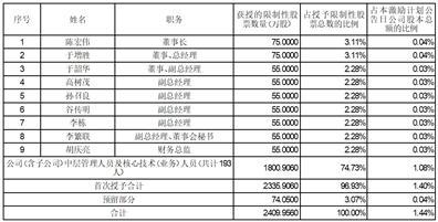 注:(一)上述任何别称激励对象通过本霸术获授的公司股票均未高出公司股本总额的1.00%,公司整个有用的激励霸术所触及的标的股票总额累计不高出公司股本总额的 10%。