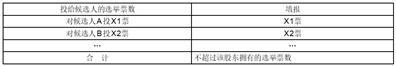 积贮投票制下投给候选东说念主的选举票数填报一览表